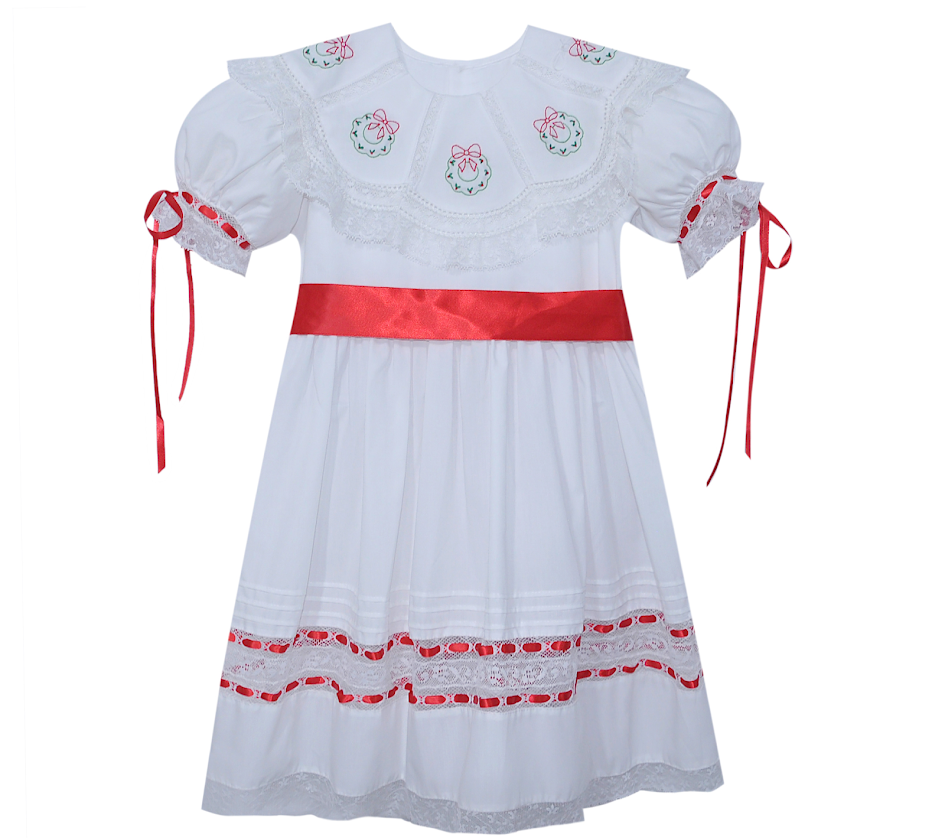 The Lucille Dress will take your breath away with it's lace details and hand stitched embroidered wreaths! This is a dress you will keep forever!